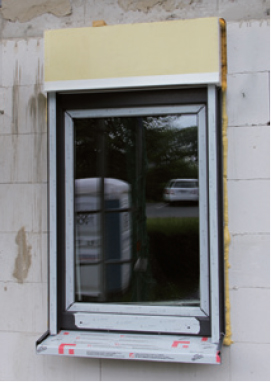 Der Aufsatzrollladenkasten hat an der Rückseite ein Aluminiumprofil als Anschlag für das Verblendmauerwerk.