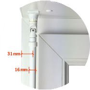 Bei Antrieben auf der Scharnierseite ist eine Blendrahmenverbreiterung erforderlich, um eine 90° Fensteröffnung zu gewährleisten.