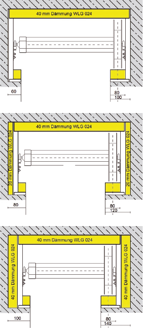 Zu den Außenmaßen der Aussparrung muss je Seite eine Schäumungsfuge von 10 mm eingeplant werden!