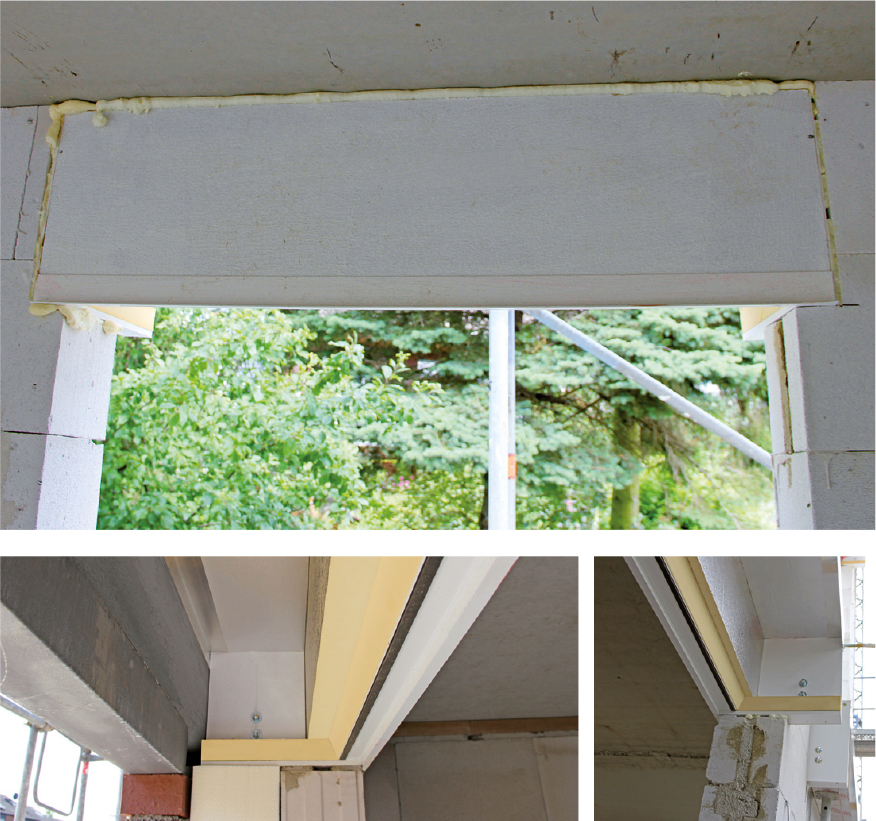 Bei Verblendmauerwerk muss die innere Frontplatte, und beim Wärmedämmverbundsystem die innere Frontplatte und die äußere XPS Blende den Vorschriften gemäß mit Gewebearmierung bearbeitet werden, sodass eine Rissbildung an den inneren Frontplatten und den äußeren XPS Blenden ausgeschlossen ist.